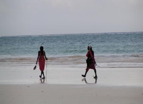 Two Maasai on the beach in Diani.